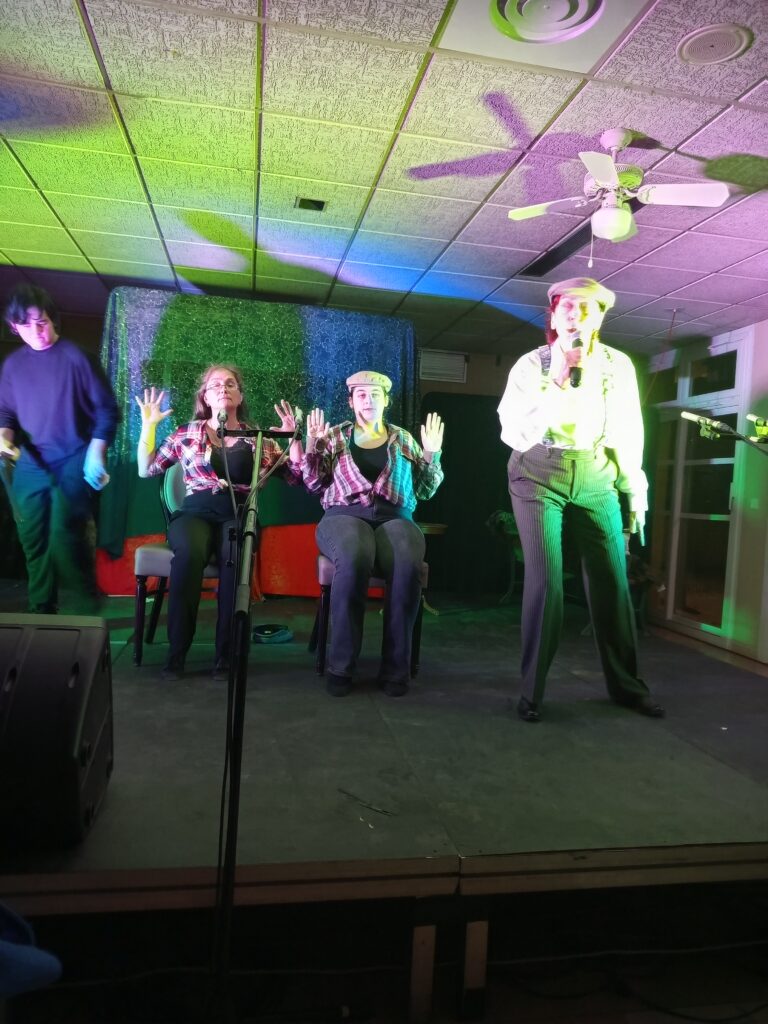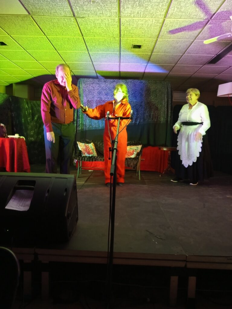 « Li Galapian dou Mistral » est une compagnie qui me surprendra toujours. Pour cette nouvelle édition de la Soirée Castagnado (en provençal, soirée où on déguste des châtaignes avec des friandises) et pour distraire les convives du foyer logement du Ronquet ; Christelle Pépin et ses enfants de la balle proposent un détournement des codes de la comédie policière avec deux spectacles qui sont conduits à grands mystères par des comédiennes et comédiens qui ne déméritent pas de fantaisie.