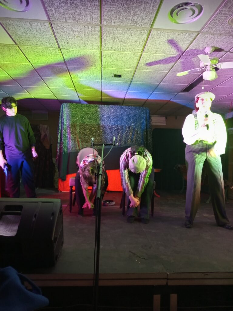 « Meurtre au Musée » est un mystère résolu par un Sherlock Holmes sombre, un personnage inspiré peut-être d’une célèbre série télévisée à la mode d’une entreprise de streaming, interprété par une chose étrange d’un jeune homme brun et sombre qui se prénomme Niels dans la vie civile. Autour de lui, des enfants entre 7 à 15 ans répondent du tac au tac à l’artiste qui s’abrite sous le célèbre chapeau du détective anglais. L’énigme en vaut la chandelle, puisque c’est au public de trouver la solution. Nous la trouvons, et l’entracte s’en suit.